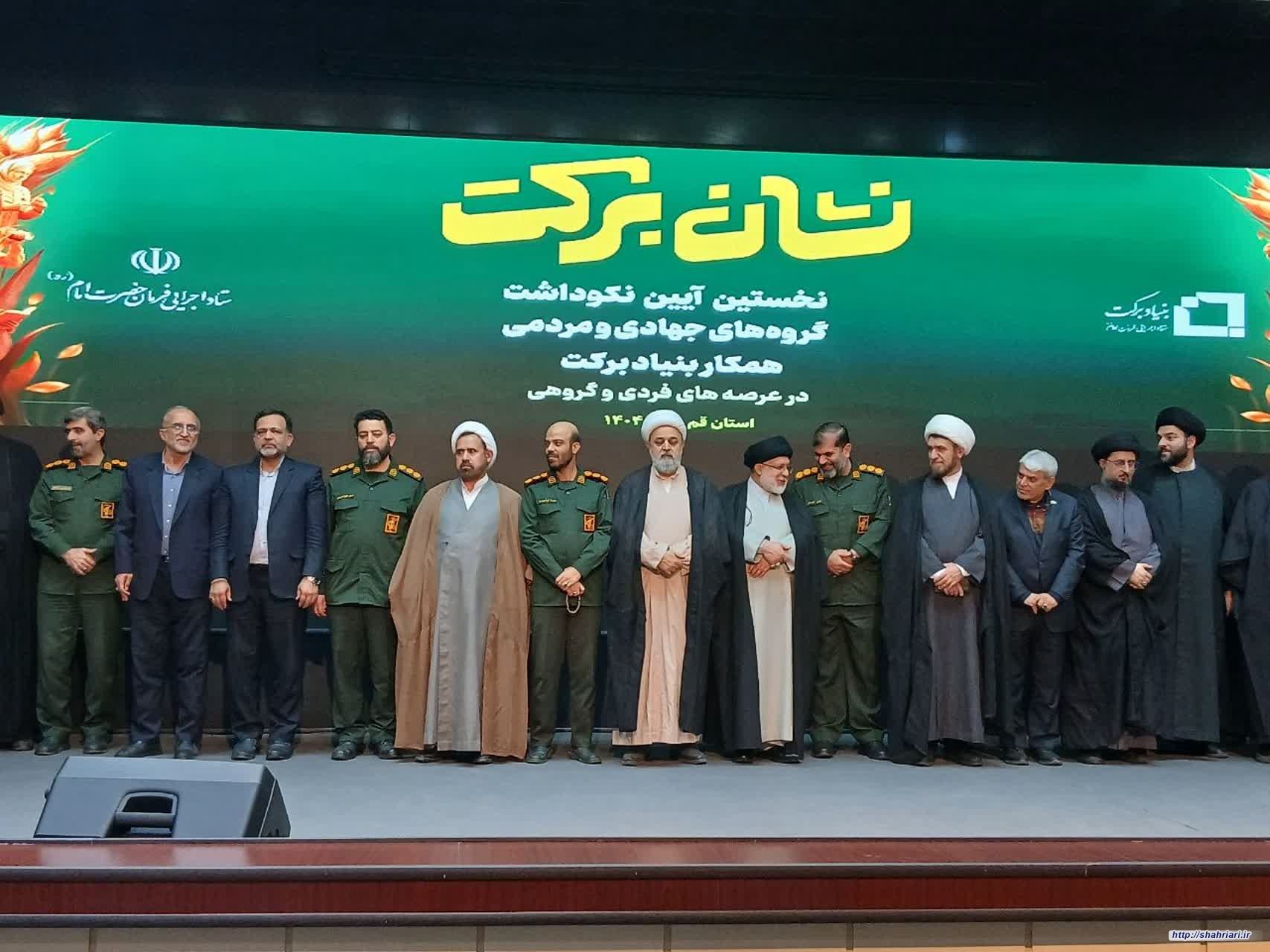 نخستین رویداد نکوداشت و تجلیل از گروههای جهادی و مردمی همکار بنیاد برکتِ ستاد اجرایی فرمان حضرت امام(ره) با عنوان «نشان برکت» در استان قم و با حضور جمع زیادی از مجموعههای مردمی و مسئولان استانی و با سخنرانی حجت الاسلام والمسلمین دکتر شهریاری دبیرکل مجمع جهانی تقریب برگزار شد.